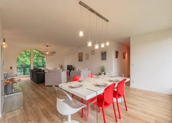 The spacious 113 m^2 Appart 3 Chambres Avec Parking Prive Et Terrasse Roubaix includes a terrace and is situated at a distance of 500 metres from Hammam Zein Roubaix Barbieux. Les Jardins Mallet-Stevens is around 25 minutes on foot from the 2-bedroom apartment, and Fresnoy Art Center is 2.2 km away.
